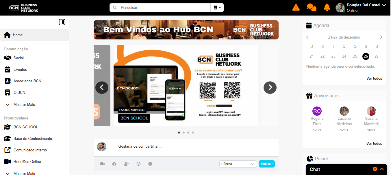 O Hub BCN é o sistema digital de gestão e comunicação que serve como a espinha dorsal tecnológica do clube, conectando os membros entre os eventos presenciais. O uso desta plataforma deve estar alinhado com a filosofia central do BCN, “Seja interessante, não interesseiro, sempre intencional”.